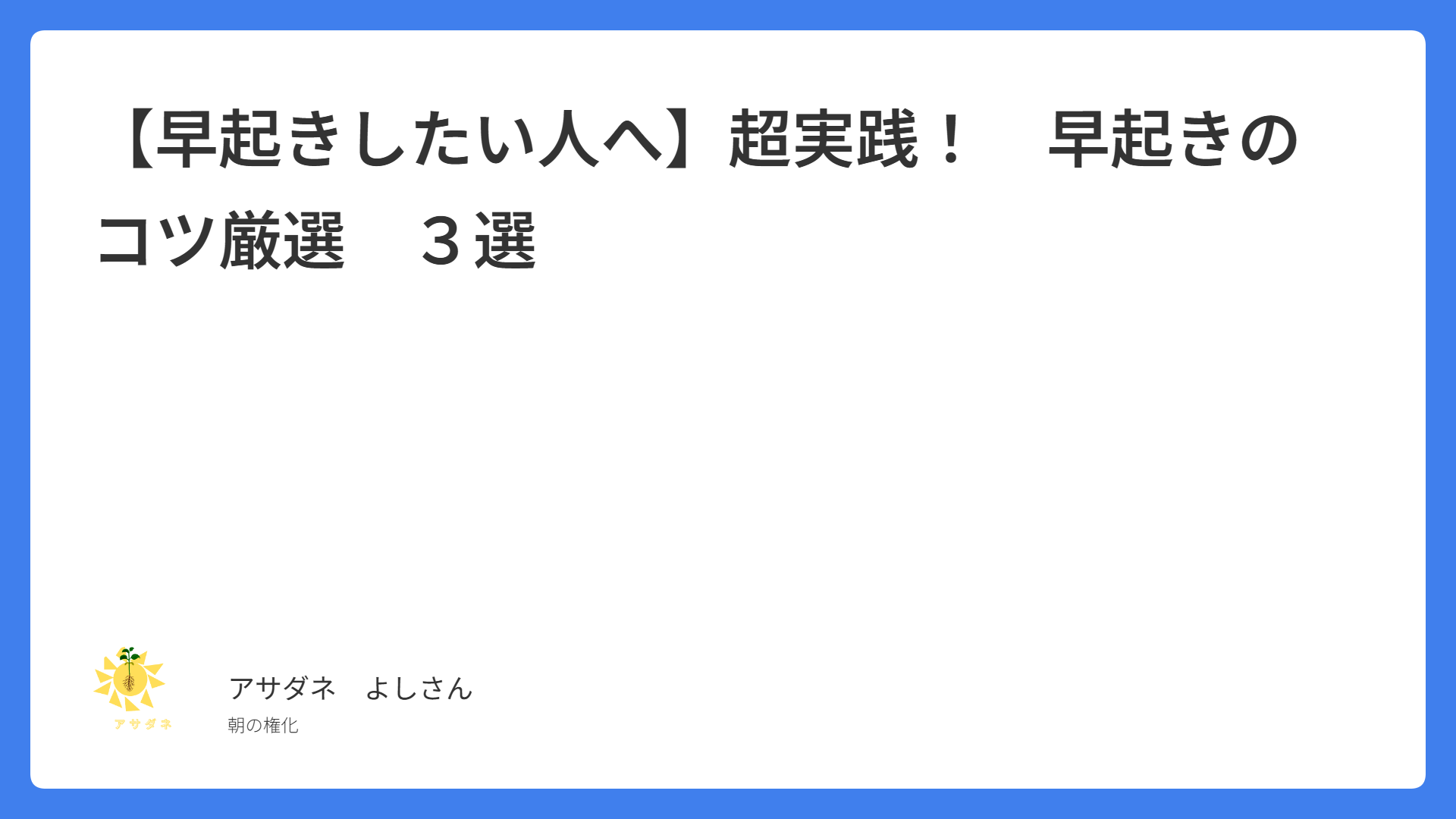 CATEGORY 早起きする 【どうしたらいい?】朝起きられない人の特徴と対策!【すぐ使える】 2025.12.07 早起きする muratazaka46@gmail.com アサダネ 【早起きしたい人へ】超実践! 早起きのコツ厳選 3選 2025.11.30 早起きする muratazaka46@gmail.com アサダネ モーニングルーティーンってむずかしい? 2025.11.18 早起きする muratazaka46@gmail.com アサダネ